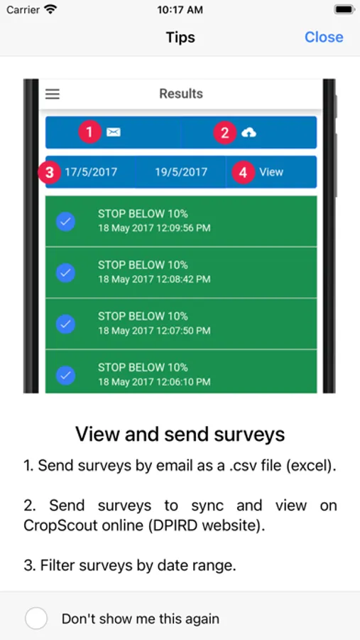 CropScout has integrated sequential sampling methods that optimise the number of plant inspections needed to be sure of densities of pests or infested plants relative to spray thresholds. Crop scouting surveys can be made within the CropScout application and visualised on a map either within the phone application or on an online map. The canola aphid (winter/spring) module is the first in a series of pest modules to be developed within MyPestGuide CropScout.