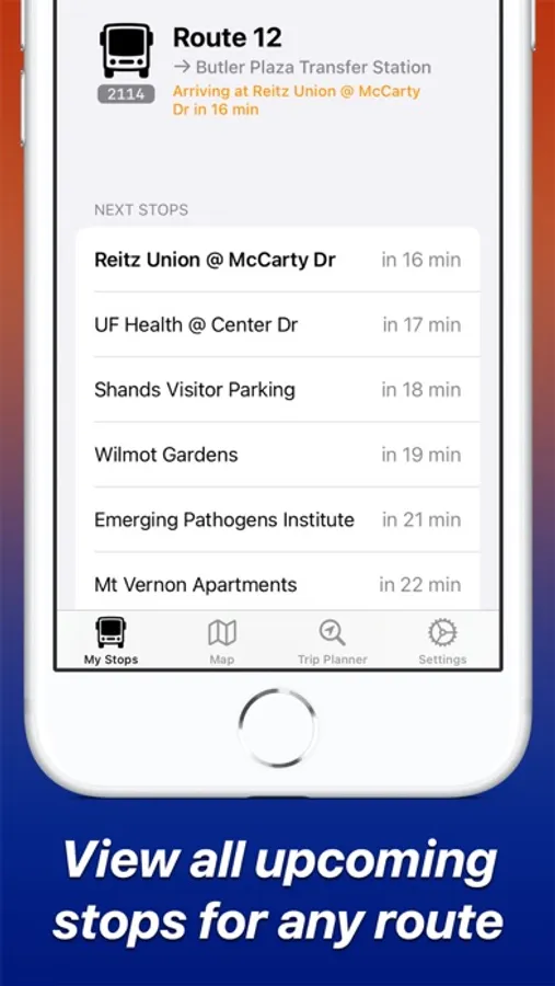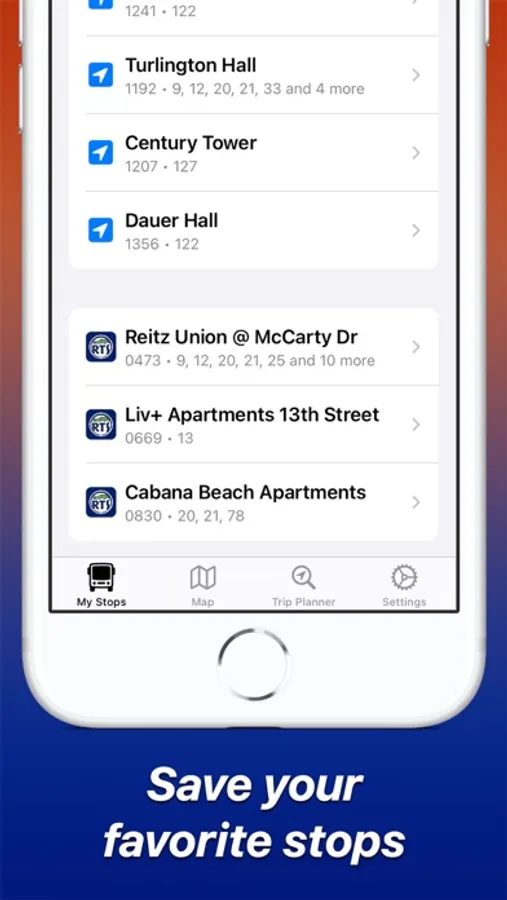 Save your most frequently visited stops to quickly check when the next bus is coming.