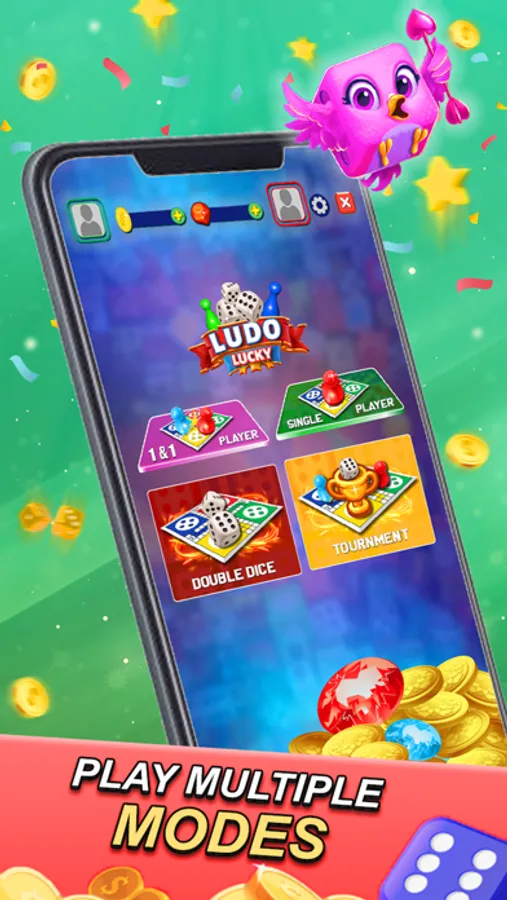 Player 1&1, single player, double dice, and tournament modes for unlimited fun of the Ludo dice board parchisi games