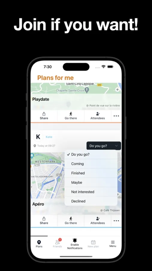 Energize your social life! Organize activities effortlessly, join your friends' plans, and make the most of your free time. Explore new experiences and deepen your friendships with us!