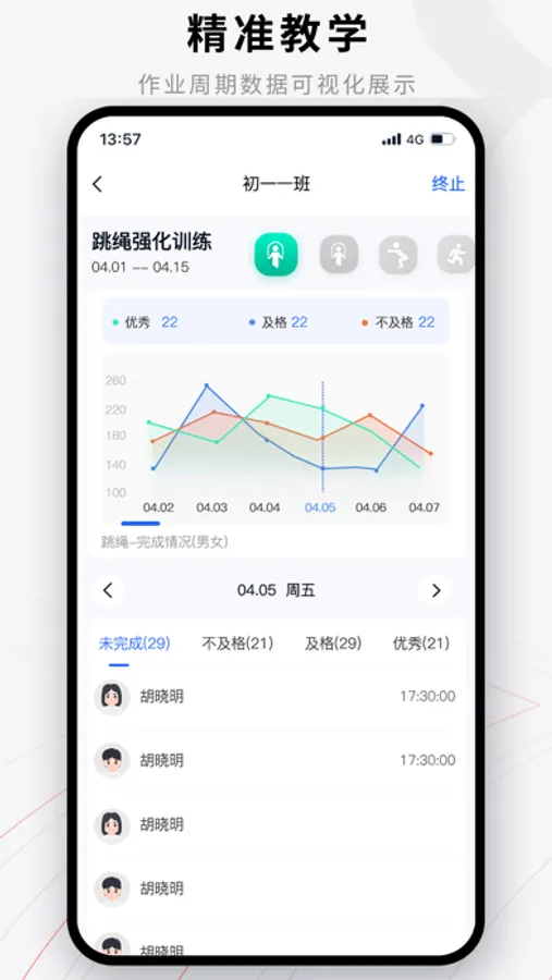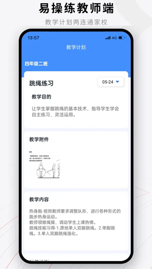 易操练-教师端帮助教师更好地发布课后作业并完成课后作业的数据统计,致力于联通家校让学生在家也能快乐运动,提升学生体能。提高教师工作效率,教学计划的展示让家校联动更密切。