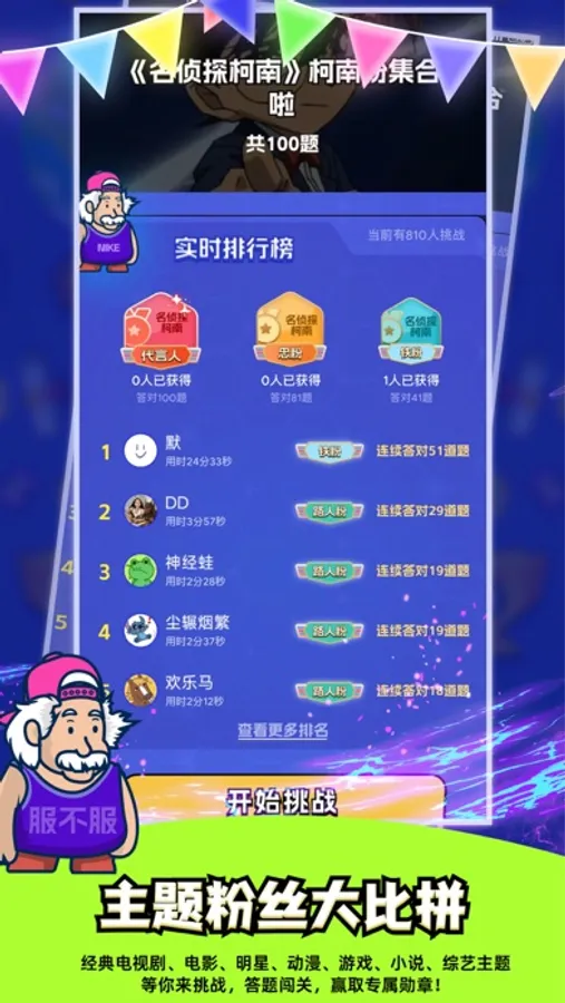 ——经典电视剧、电影、明星、动漫、游戏、小说、综艺主题等你来挑战,答题闯关,赢取专属勋章!