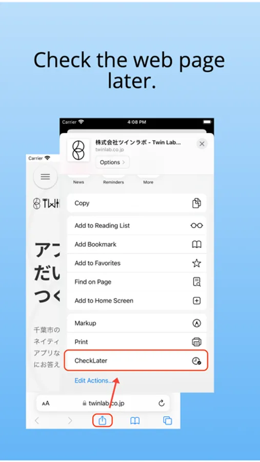 Make information gathering a breeze with the "Check Later Reminder" app. Simply select "Check Later" from the share button to temporarily save any website you're interested in. It's as easy to use as any built-in feature on your phone, allowing you to stock up on info without breaking a sweat.