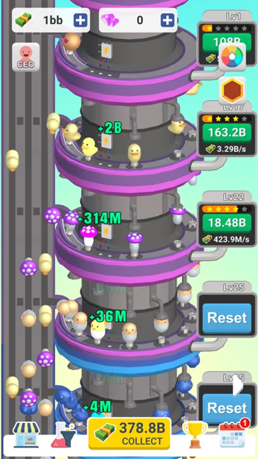 Starting from the first light bulb production line, produce light bulbs, transport them to the conveyor belt, and sell them. Use the profit to upgrade the production line to improve production efficiency. You can also buy new production lines to generate more light bulbs. When you have enough wealth, you can hire administrators to help you manage. Continuously develop your company until it becomes the largest one in the world.