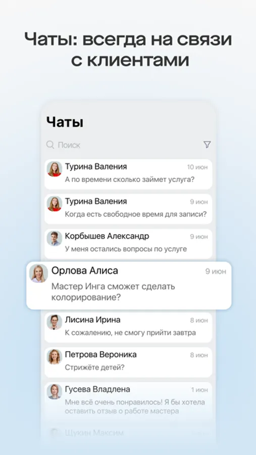 Уточняйте нюансы записи, собирайте отзывы, отвечайте на вопросы в чатах.