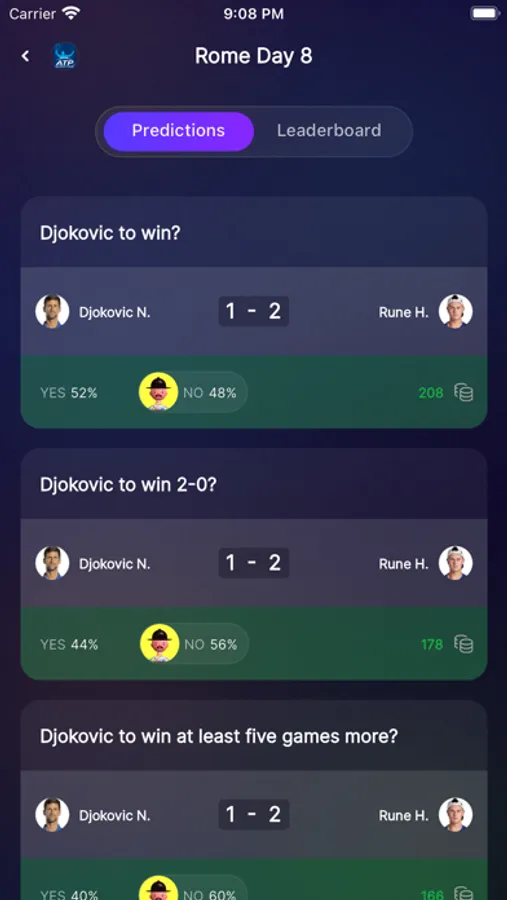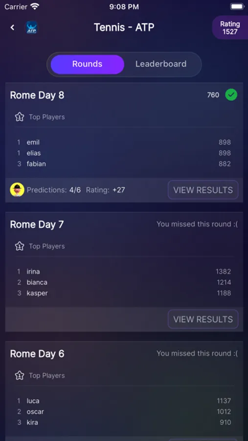 Each league has rounds (roughly weekly, for the built-in leagues). A round consists of around 10 short-term Yes/No predictions, and is bounded to that. To eliminate exposure to odds and free user's intuition, we use betting pools (https://en.wikipedia.org/wiki/Betting_pool). Each round has its own ranking which adjusts the general league ranking, which is an ELO-like rating system (https://en.wikipedia.org/wiki/Elo_rating_system). A reputation system is thus generated, ranging from noob levels to a "Hari Seldon" level that user can share with friends and the world.