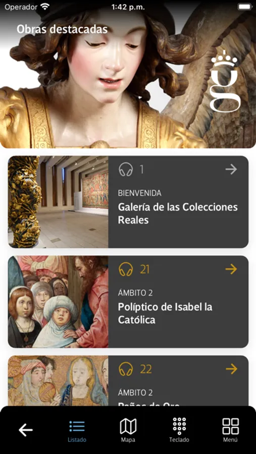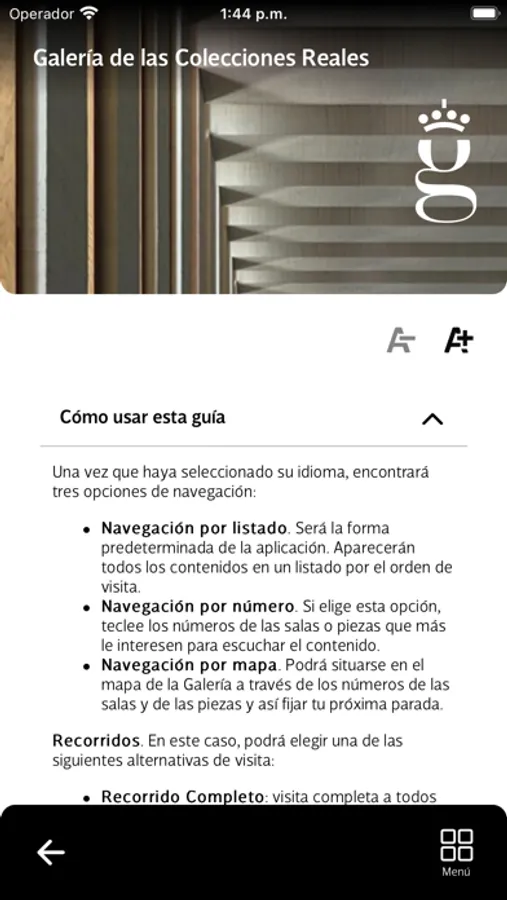 Nuestra app te ayudará a navegar por sus plantas llenas de increíbles tapices, instrumentos musicales y artes decorativas. Recibirás información detallada y contextualizada de las obras para mejorar tu experiencia y comprensión.