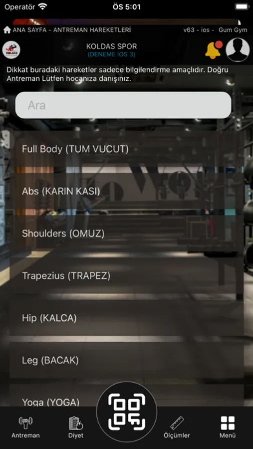 Antrenmanlar: Bu bölümde, spor kulübünde yapacağınız 1500'den fazla egzersizi görsel olarak inceleyebilir, özel antrenman programınızı ve günlük bölgesel gelişiminizi takip edebilirsiniz.