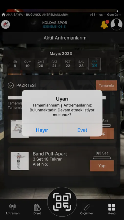 Bildirimler: Spor merkeziniz tarafından sağlanan tüm bildirimleri program aracılığıyla takip edebilirsiniz.