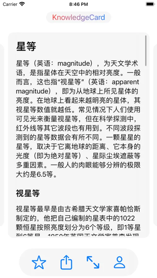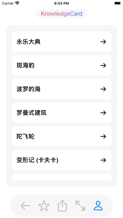 KnowledgeCard - 知识卡 是一个简单、纯粹的App,它是一个充满各种知识的小世界。