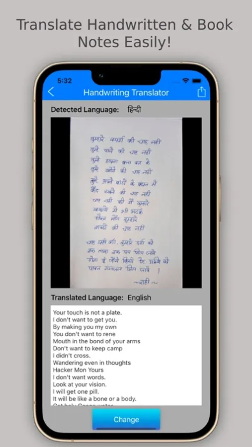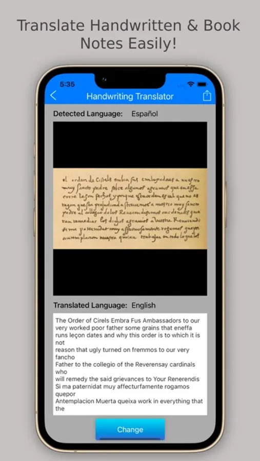 You can scan and translate handwritten text notes or any form of text from paper to editable text in your device in just one click.