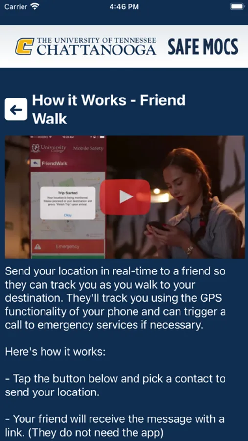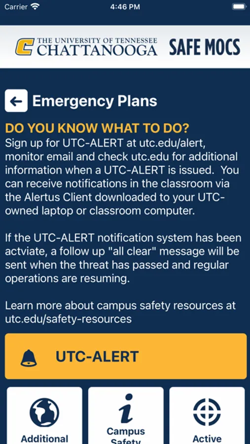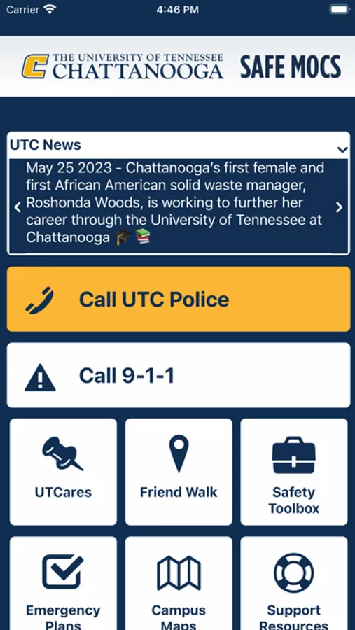 - Safety Notifications: Receive instant notifications and instructions from University of Tennessee at Chattanooga safety when on-campus emergencies occur.
