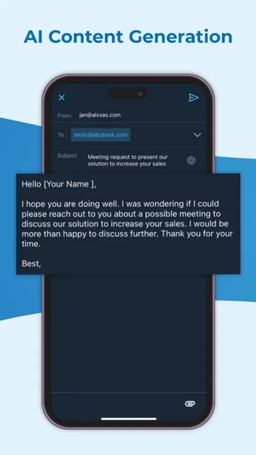 DeepBlueWork provides a state-of-the-art, AI-powered email client tailored for business use. Our robust security measures ensure the confidentiality and integrity of your communications. Enjoy a wide range of features specifically designed to meet your business needs, surpassing the capabilities of a regular email client.