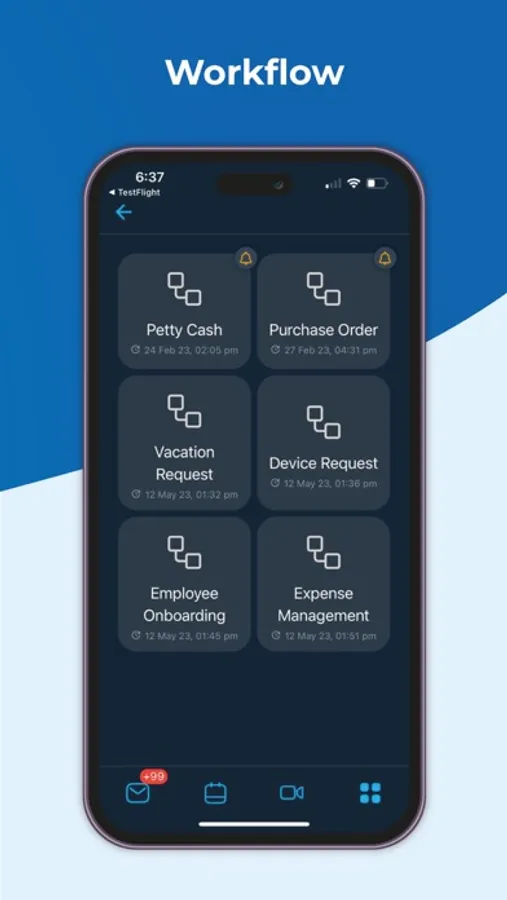 Simplify and automate your internal processes with DeepBlueWork's powerful workflow feature. Design form-based workflows tailored to your specific business requirements. Manage tasks such as vacation requests, device requests, employee onboarding, expense approvals, and more. Streamline your operations, reduce manual efforts, and increase efficiency.