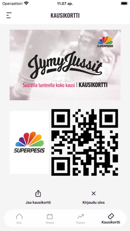 Superpesis kausikortti -sovelluksesta löydät myös ostamasi kausikortin (Ticketmasterin kautta ostetut kausikortit) ja pääset sitä näyttämällä kätevästi pesiskatsomoon!
