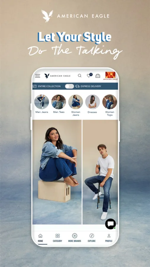 The American Eagle app also enables you to toggle to other well known brands of Aditya Birla Fashion and Retail Ltd including Louis Phillippe, Van Heusen, Allen Solly, Peter England and Reebok