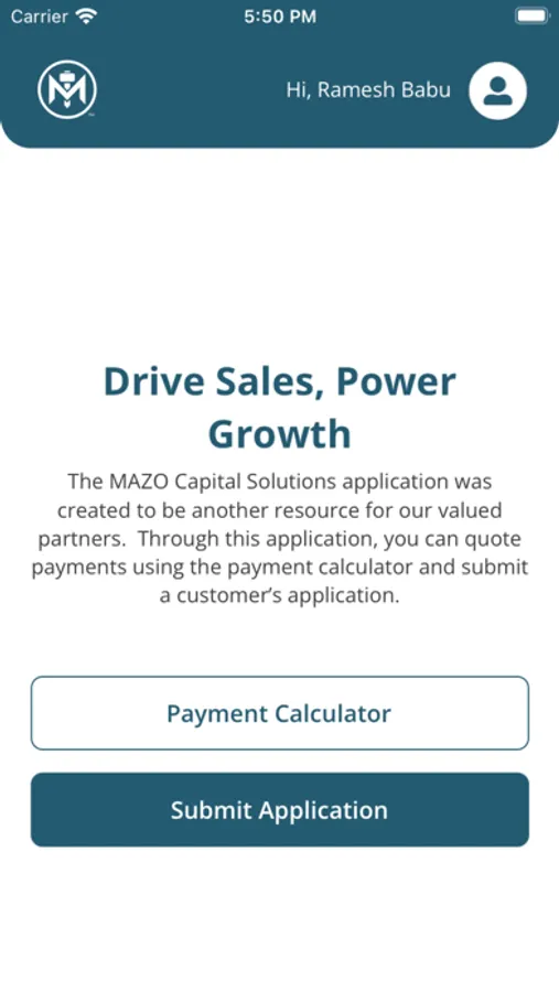 The Mazo Capital app is designed for Dealership Sales people to quickly calculate, apply for and quote customers financing options. The app allows users to register if they work for dealerships that use Mazo Captial for equipment financing and then access finance applications, submitting them to Mazo under their dealership's reference id.