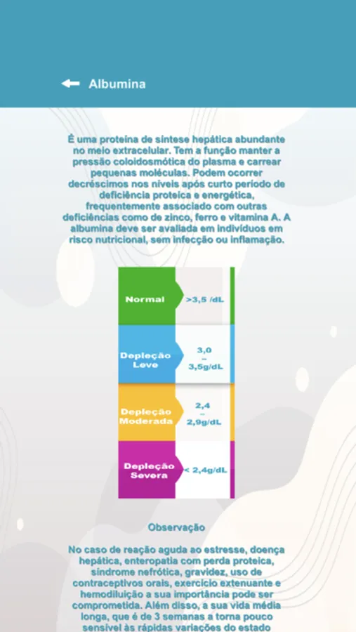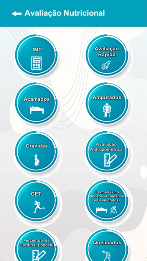 Ele inclui cálculo de Adequação do Peso, Cálculo de Altura, Estimativa de Peso em Amputados, Circunferência do Braço, Peso Corrigido (Edema), Gasto Energético Total em acamados, eutróficos e fórmula de bolso, cálculos básicos gestacionais, IMC, Cálculo de Perda de Peso, Peso Ajustado, Peso Estimado, Peso Ideal, Avaliação Rápida, Relação Cintura - Quadril, Triagem para Pacientes Hospitalares, Exame Físico Auxiliar, 10 Passos para uma Alimentação Adequada e Saudável, Ânion Gap, Área de Superfície Corporal, Correção de Cálcio na Hipoalbuminemia, Contagem Total de Linfócitos, Equação de Friedewald de Lipoproteína de Baixa Densidade (LDL-C), Fórmula HOMA, Exames Bioquímicos(Albumina, Eletrólitos, Enzimas Digestivas, Avaliação Nutricional do Ferro, Glicemia, Hemograma, Contagem Total de Linfócitos, Lipidograma, Pré Albumina, Função Renal, Transferrina, Vitaminas), Distribuição de Macronutrientes Cálculo de Peso e Altura em Acamados.