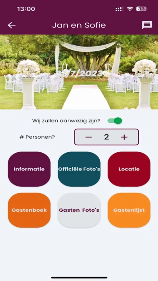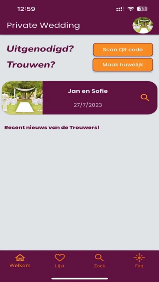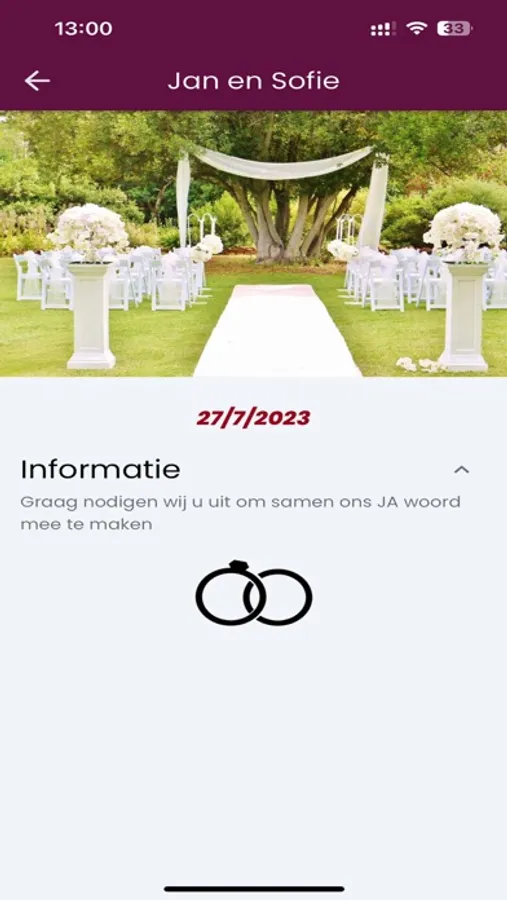 Met deze mobiele app hebben we een toepassing gecreëerd om uw eigen huwelijk te organiseren. Volgende functies zijn er beschikbaar: