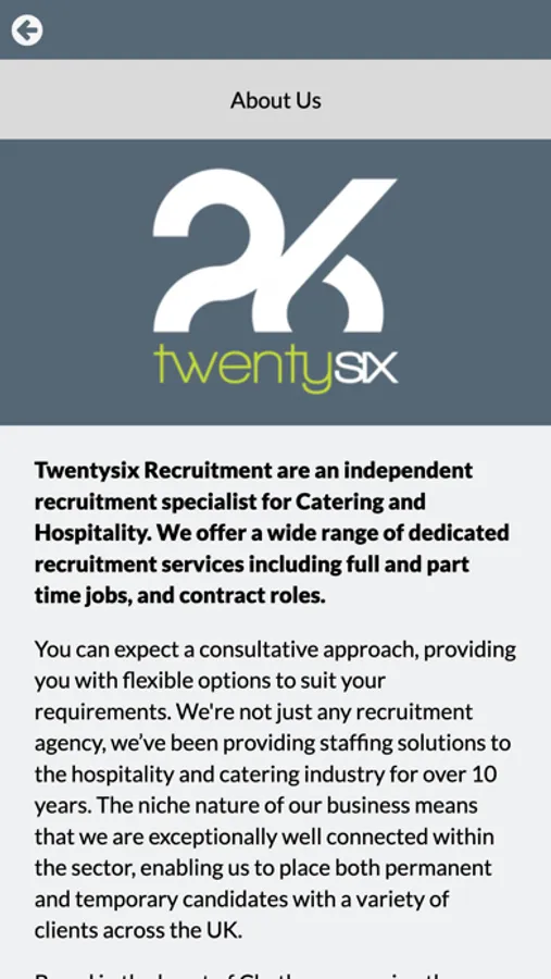 Twentysix Recruitment are an independant recruitment specialist for Catering and Hospitality. We offer a wide range of dedicated recruitment services including full and part time jobs, and contract roles.