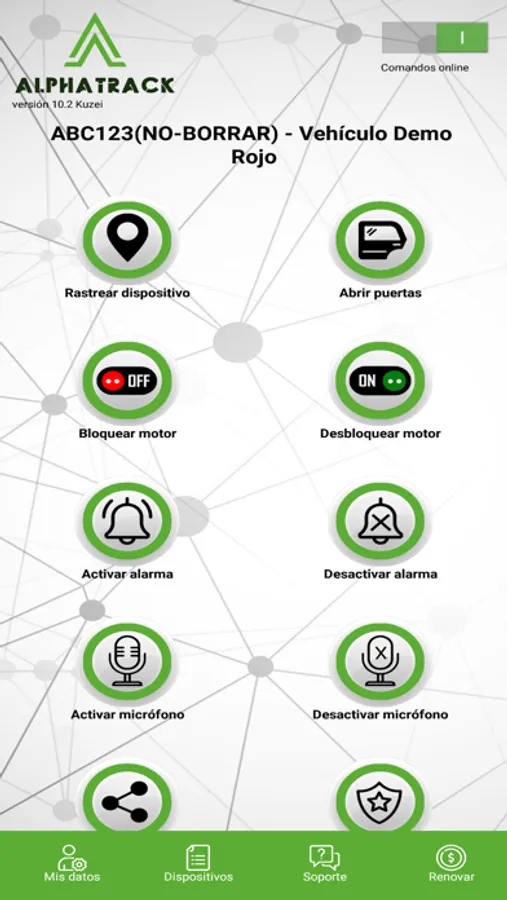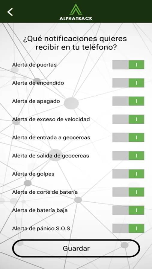 Con ALPHATRACK podrás además de rastrear tu vehículo, apagarlo remotamente, recibir alertas de apertura de switch o llave, apertura de puertas, golpes, exceso de velocidad, entrada/salida de geocercas entre muchas otras opciones.