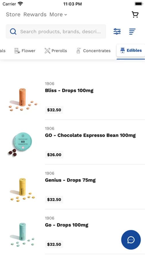 - Merch: Apparel, accessories, bongs, filters, papers, lighters, grinders