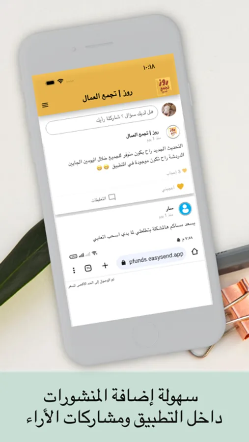 تطبيق روز | تجمع العمال ، هدف التطبيق جمع العمال تحت سقف واحد لمشاركة استفسارتكم وخبراتكم مع بعضكم البعض ، لنكن يداً بيد ونساعد بعضنا البعض