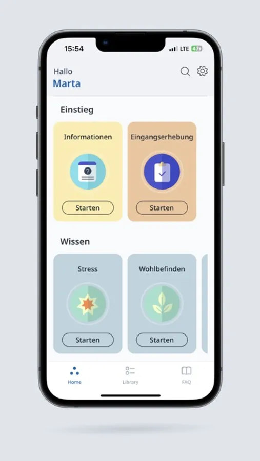 Laden Sie sich die App herunter und geben Sie eine Studien-ID oder eine persönliche Teilnehmenden-ID ein, um sich für eine Studie zu registrieren. Studien- und Teilnahme-IDs erhalten Sie über unsere Studienrekrutierungskanäle oder direkt von Ihrer Behandler:in.