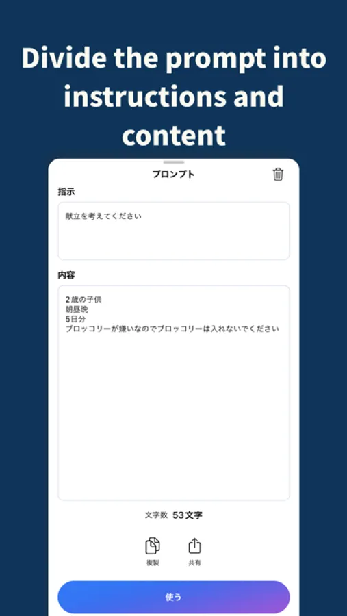 You can divide prompts into two parts: instructions and content. This allows for a clearer understanding of the AI's requirements and the specific details.