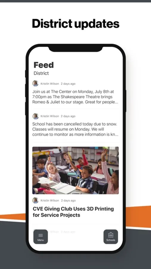 In the Live Feed is where you'll find updates from the administration about what's going on in the district right now. Whether that's celebrating a student's success, or reminding you about an upcoming deadline.