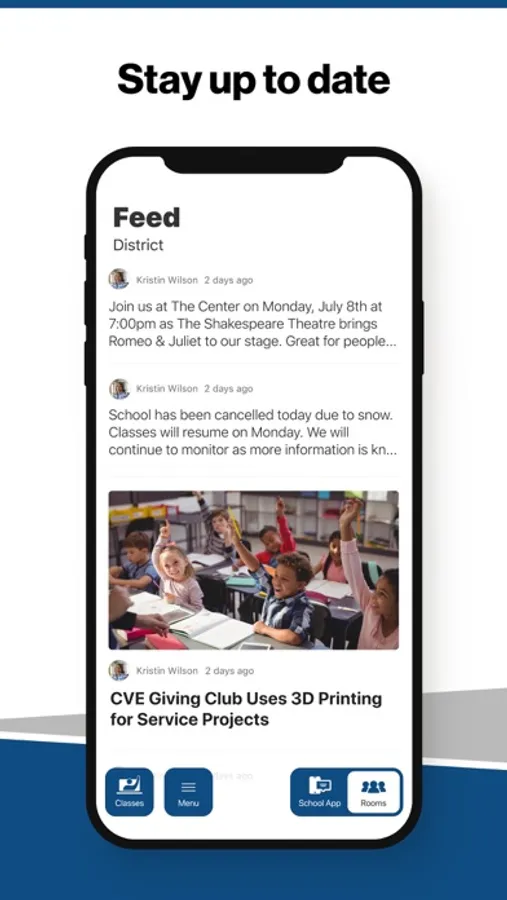 In the Live Feed is where you'll find updates from the administration about what's going on in the district right now. Whether that's celebrating a student's success, or reminding you about an upcoming deadline.