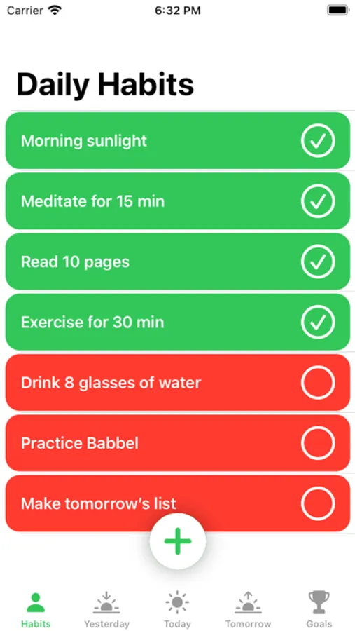 Red Green is your ultimate companion on the journey to personal growth and success. This remarkable app, as intuitive as pencil and paper, empowers you to unlock your true potential by effortlessly tracking the three pillars of personal development: your daily habits, tasks, and ambitious goals.