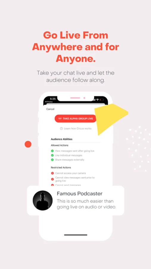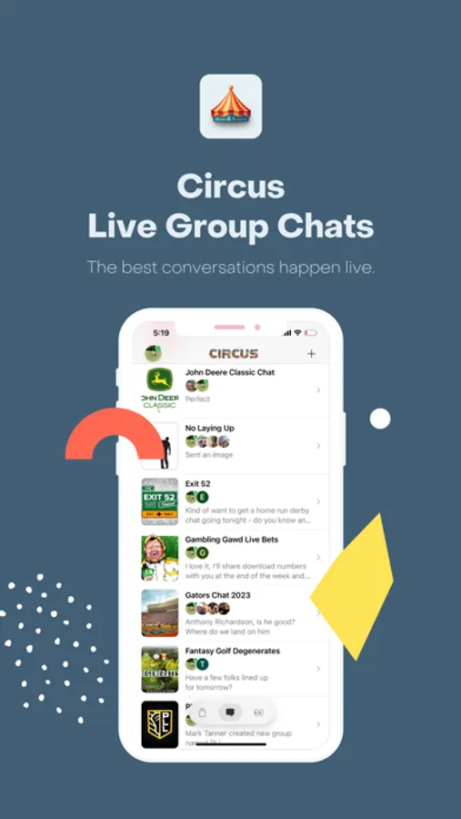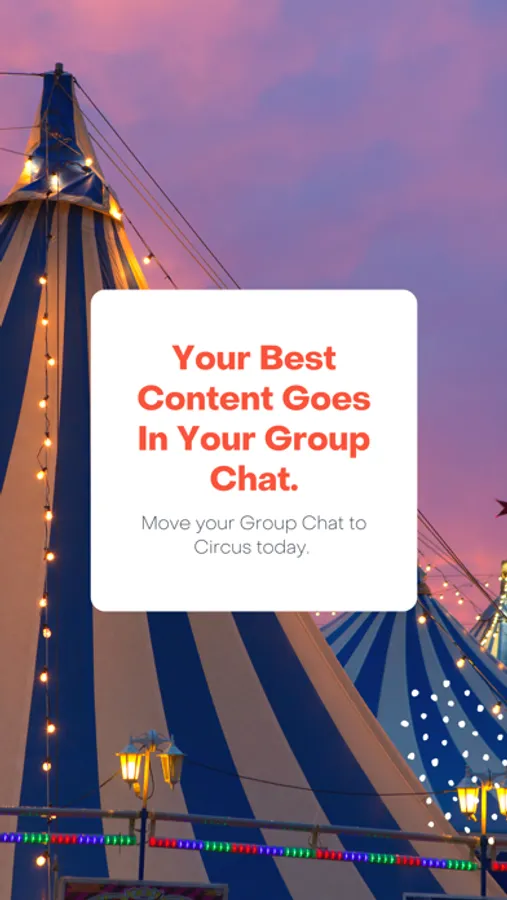 Circus is the first ever Live Group Chat app. Take your conversations on Circus live, and broadcast them to an audience of any size. Group Chats are the best form of conversation, now you can share your chats with the world.