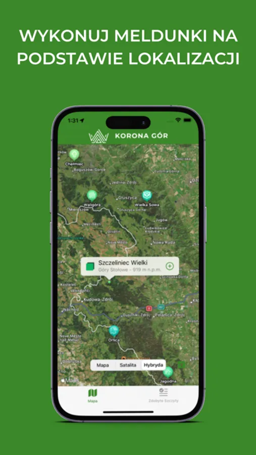 Na podstawie lokalizacji użytkownik może zameldować się w odległości 100 metrów od szczytu, a swoje osiągnięcia monitorować oraz udostępnić znajomym.