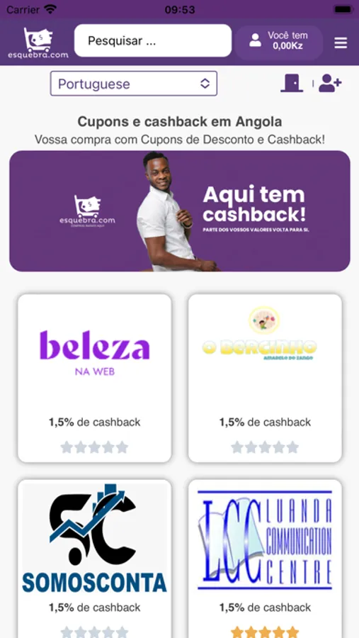 O esquebra.com é uma plataforma web/app que divulga cupons de descontos de diferentes empresas e categorias (Restauração, Eventos, Produtos e Serviços dos mais variados). No esquebra.com o usuário também tem parte dos valores gastos em cashback para compras futuras.