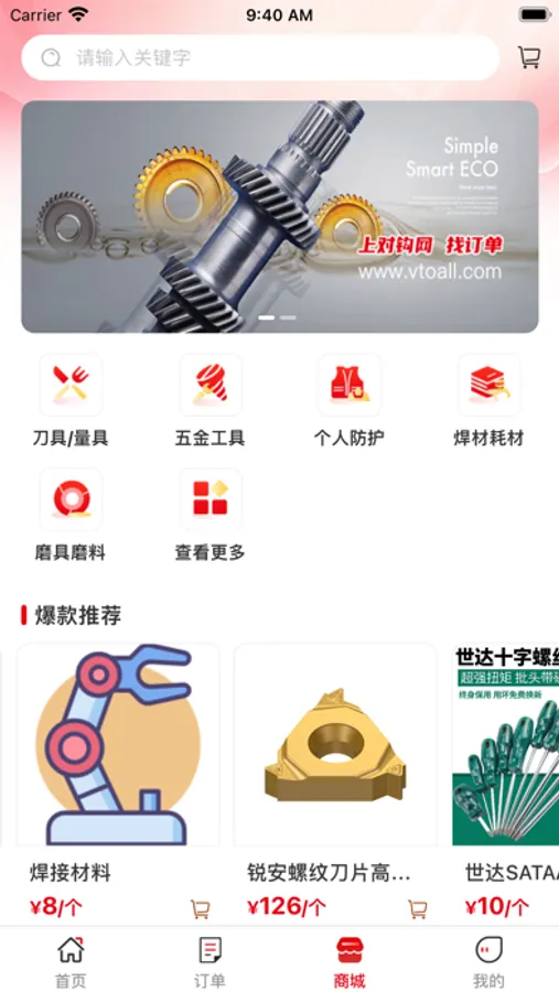对钩网旗下工业品商城为一站式工业品服务平台,为您提供五金工具、加工刃具、生产防护等各类工业用品,致力于通过提供一站式数字化采购解决方案,为机械制造企业快速实现降本、增效。