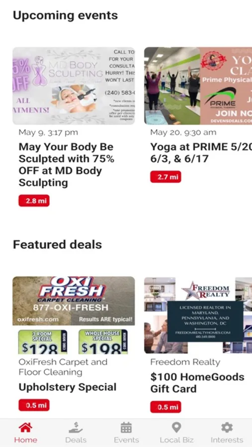 Deven's Deals helps you save money by bringing you exclusive deals at small businesses near Carroll County, Maryland. It also brings the community together by getting the word out about fun events. The app (free and with no signup required) will show you what small businesses are nearby that meet your interests and give you access to special offers there, as well as tell you about fun events for your family. Save money, support small businesses, and join in fun with neighbors!