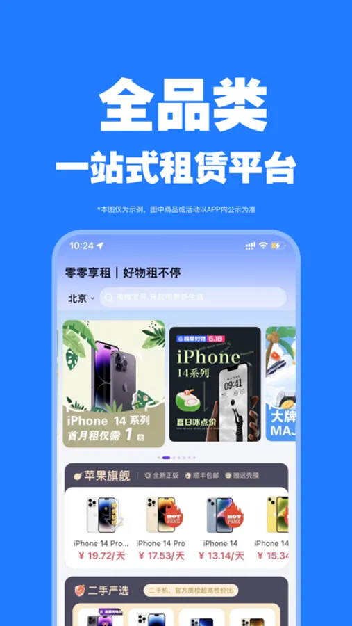 租赁服务:包括手机租赁、电脑租赁、摄影产品租赁、游戏装备租赁、娱乐影音租赁、健康生活、摄影航拍等,每月只需极低的成本便可使用新款的智能科技产品