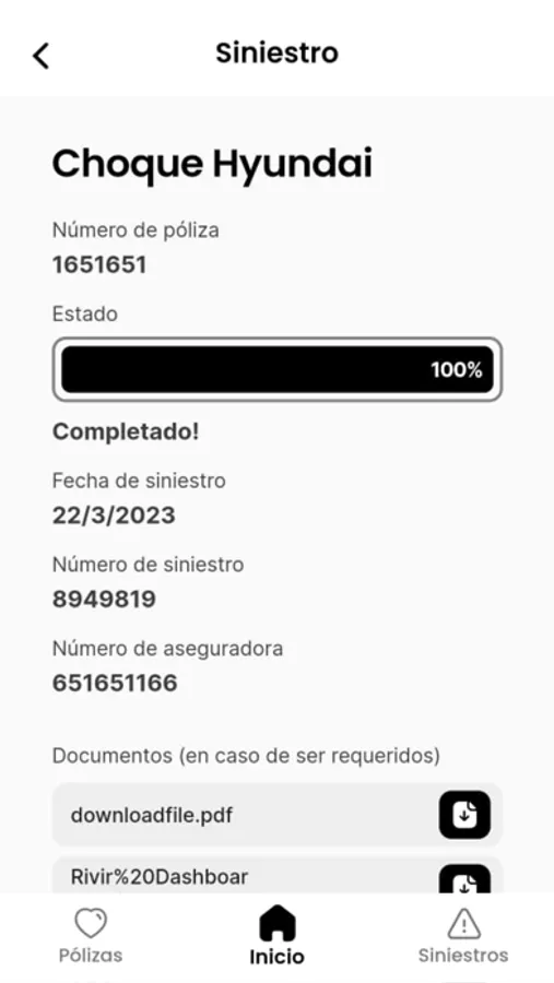 También puedes ver todos tus siniestros reportados, su estado de solución, y podrás subir documentos solicitados por la aseguradora directamente desde la aplicación.