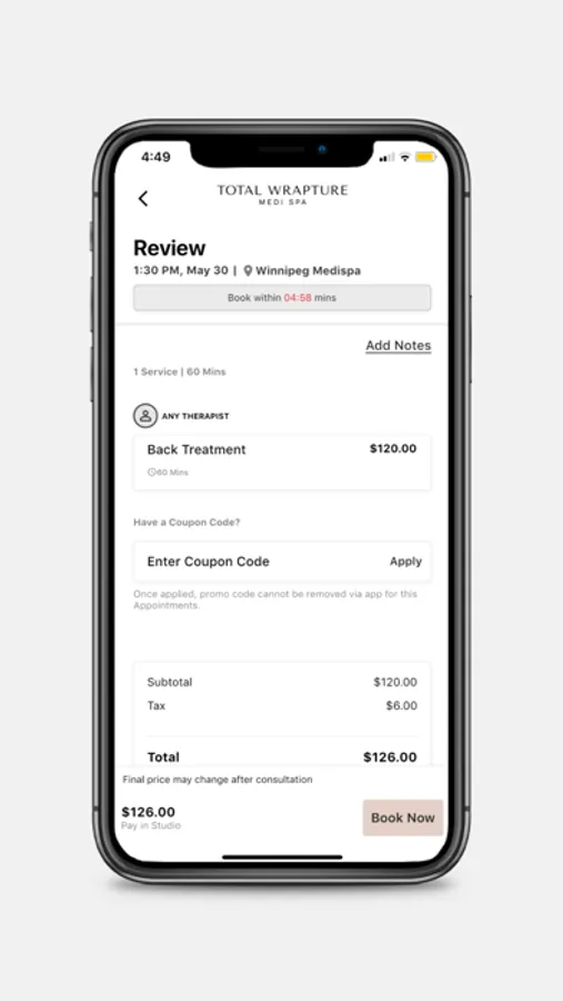 Manage your bookings and access your account and loyalty information! We know just how busy you are and we are making your Total Wrapture Medi Spa experience more efficient than ever. Here are some features you will enjoy: