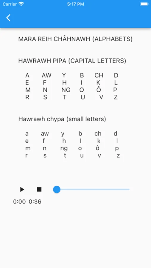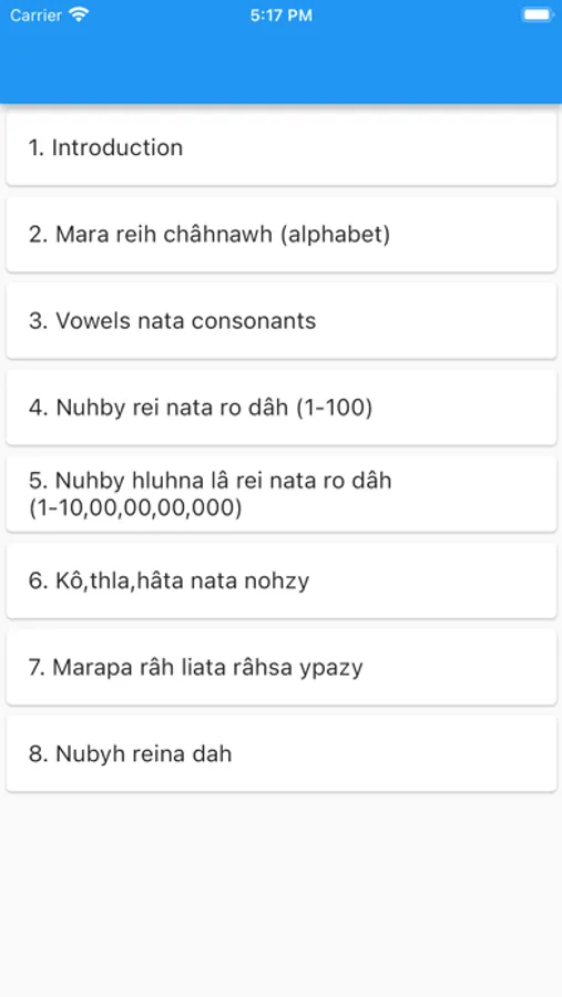 This app is for learning the Mara language. Due to the various dialects within the Mara language, it has become difficult for the Maras abroad to learn the official written language of their native language. Through this app, the developer hopes that the people of Mara who reside in different parts of the world can learn the official written language of Mara.