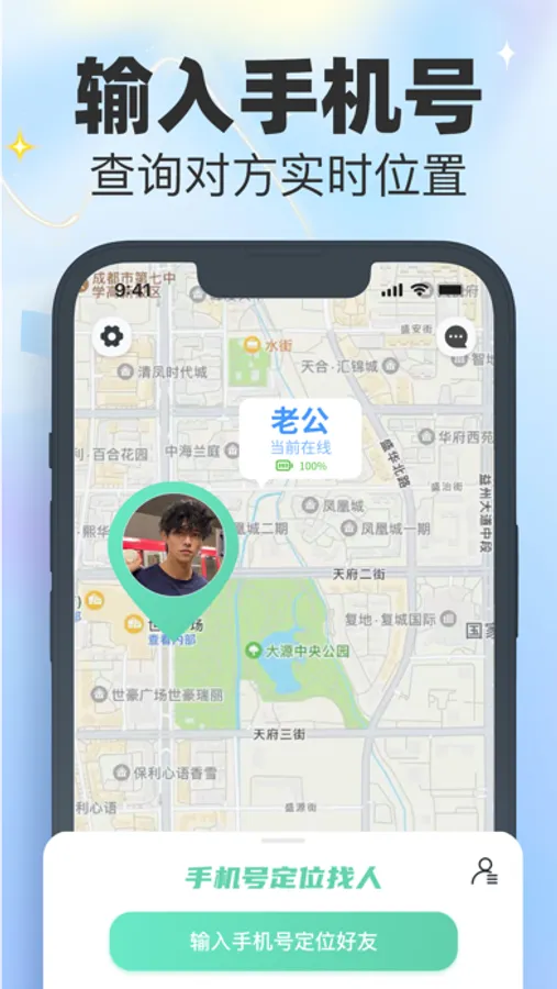 手机定位找人应用是一款GPS定位工具,可以追踪帮您快速查找家人、朋友、好友实时位置,保障您的好友的安全。让您可以随时随地了解对方的位置,再也不用问“在哪儿?”免去您的牵挂,是家庭、亲友、情侣之间必备定位神器,更有附近圈子,尽享地图生活~;