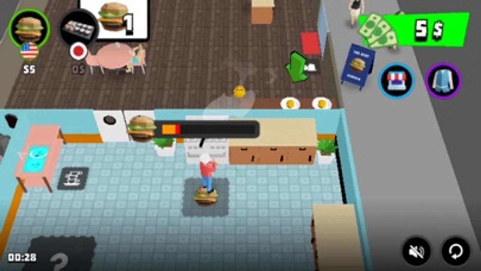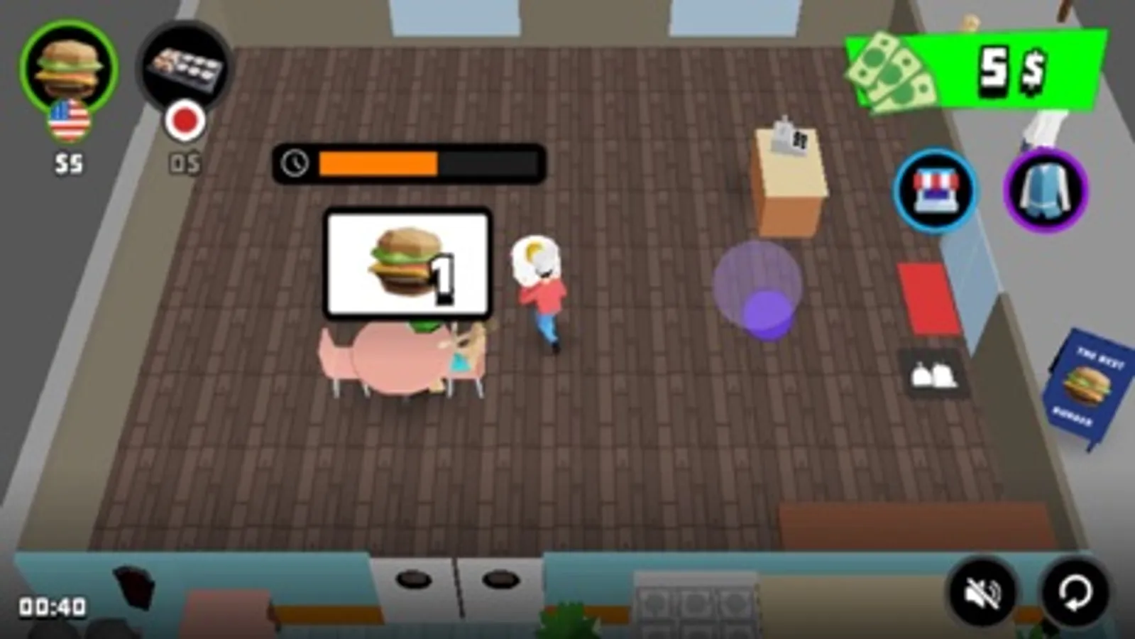 Unlock and upgrade stations, hire waiters, and expand your restaurant! You can customize your burger joint by simply standing over the stations you want to unlock and upgrade. Once the fee is paid, that station gets unlocked or upgraded!