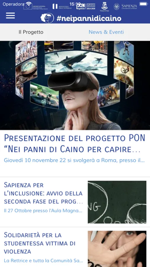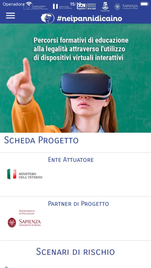 Il Progetto PON “Nei panni di Caino per capire e difendere le ragioni di Abele (Educazione alla legalità per la prevenzione di comportamenti antisociali espressi anche attraverso l’uso della realtà virtuale immersiva)” vede la collaborazione del Ministero dell’Interno – Dipartimento di Pubblica Sicurezza – Direzione Centrale per la Polizia Stradale, Ferroviaria, delle Comunicazioni e per i Reparti Speciali della Polizia di Stato e il Dipartimento di Psicologia dell’Università Sapienza di Roma.
