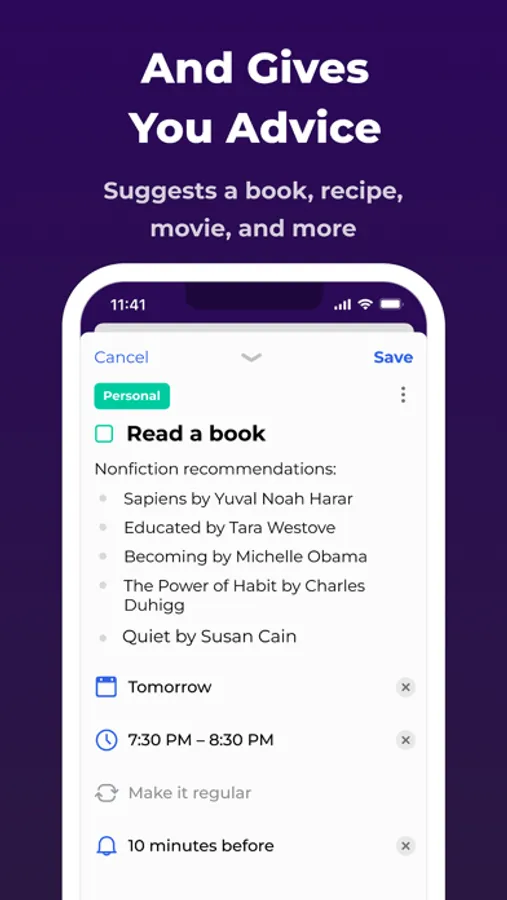 Dreaming of some downtime with a book but can't find the slot? Simply say: "Find me some time to relax with a book. Got any good non-fiction recommendations?" And just like that, your assistant will propose a suitable time and suggest a few intriguing non-fiction books. But it's not all about books. Whether you need suggestions for training plans, what to make for dinner, which movie to catch tonight, and much more, all at your request.