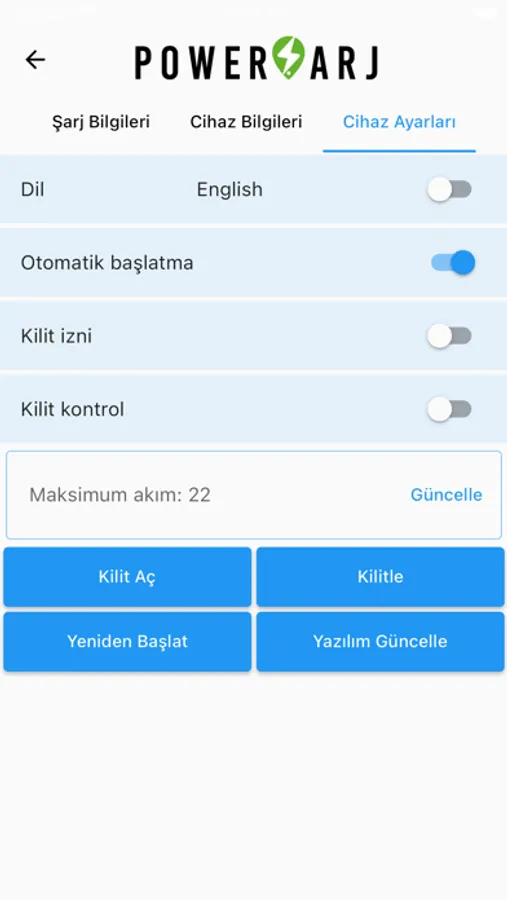 PowerŞarj Basic şarj cihazları için wifi kullanılarak yönetim uygulaması