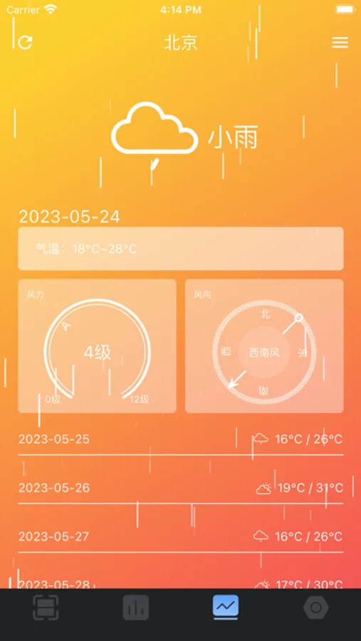 3.天气管理,设置自己的城市,实时掌握天气情况。