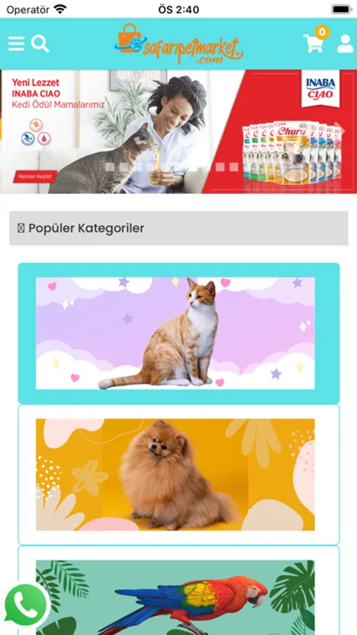 Safari Pet Market mobil uygulamasıyla balık, kedi, köpek, kuş, kemirgen, sürüngen ürünlerini satın alabilirsiniz.