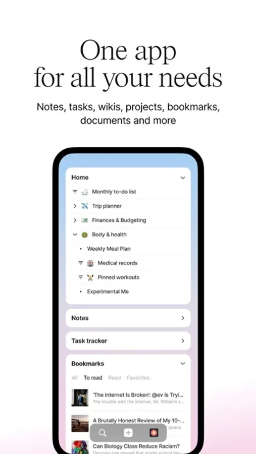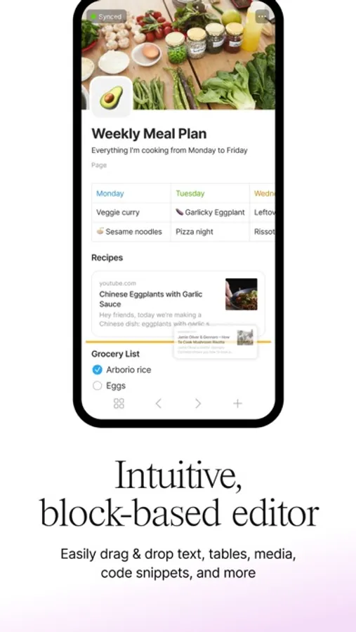 Anytype is your everyday companion to help you take back ownership of your digital life - starting with your notes, documents, tasks, and ideas. Everything you create in Anytype is E2E encrypted, offline-accessible, and p2p synced. Anytype supports block-based editing, templates, tables, databases, bookmarks, code snippets, and more.