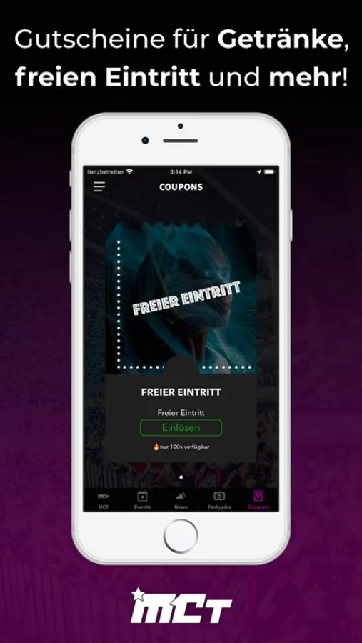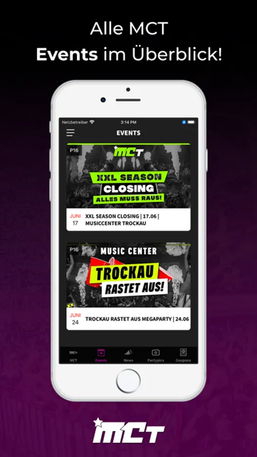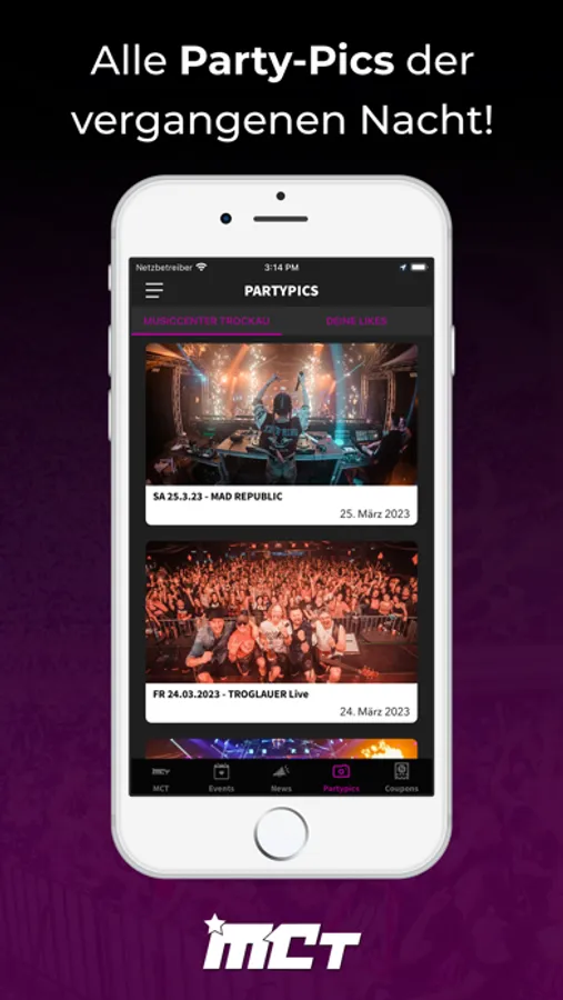 Du erfährst als erster, wann die nächste Party steigt und profitierst dabei noch von fetten Aktionen. Zum Event sparst du mit unseren Gutscheinen bares Geld. Damit du dich am Tag danach auch an den geilen Abend erinnern kannst, stellen wir alle Party-Pics in der App bereit.